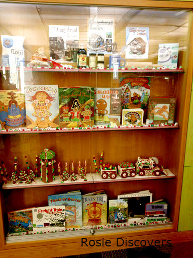 Hidden away in the back corner of the Children’s section is a hand-made gingerbread train! It was made by one of the library employees. I was suitably impressed as I’ve never attempted to make, bake and carve my own gingerbread creations. That’s a lot of work! Not including all the decorating that goes into anything gingerbread. Typically during the holidays I’m so busy baking, that I’d never have time to try something like this.