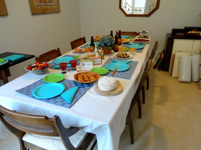Susie: We decorated with blues and greens to match our island themed food. Then we set out to mix and set out all of our food.